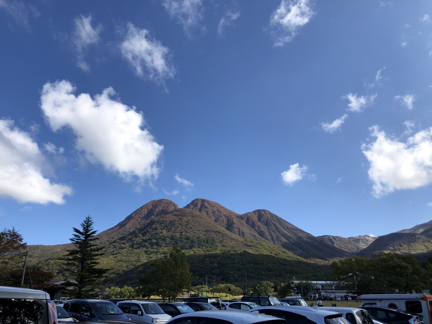 くじゅう山開きが行われる 久住山 まで125分大曲登山口 三俣山 星生山 沓掛山 九重連山 空撮 4k 写真 Vol 12 絶景アウトドア くじゅう高原をドローン撮影 九州 九重連山 久住高原 宿泊施設 ホテルや登山 キャンプ場 くじゅう花公園 観光等